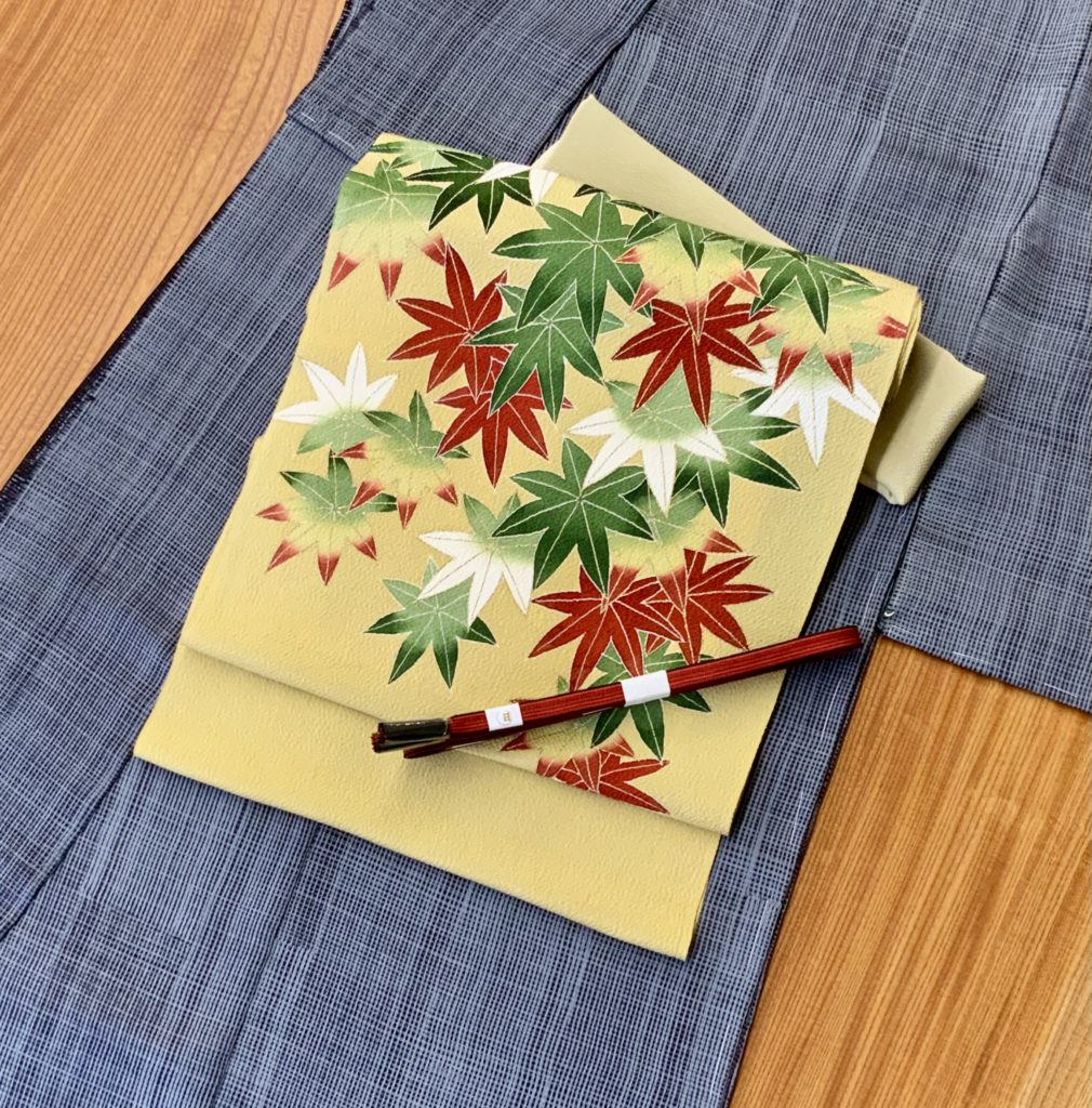 #名古屋帯 #小紋 #ちりめん帯 #紅葉柄 #秋着物 #季節の装い #和装コーディネート #銀座つむぎや #着物好きと繋がりたい #和のある暮らし