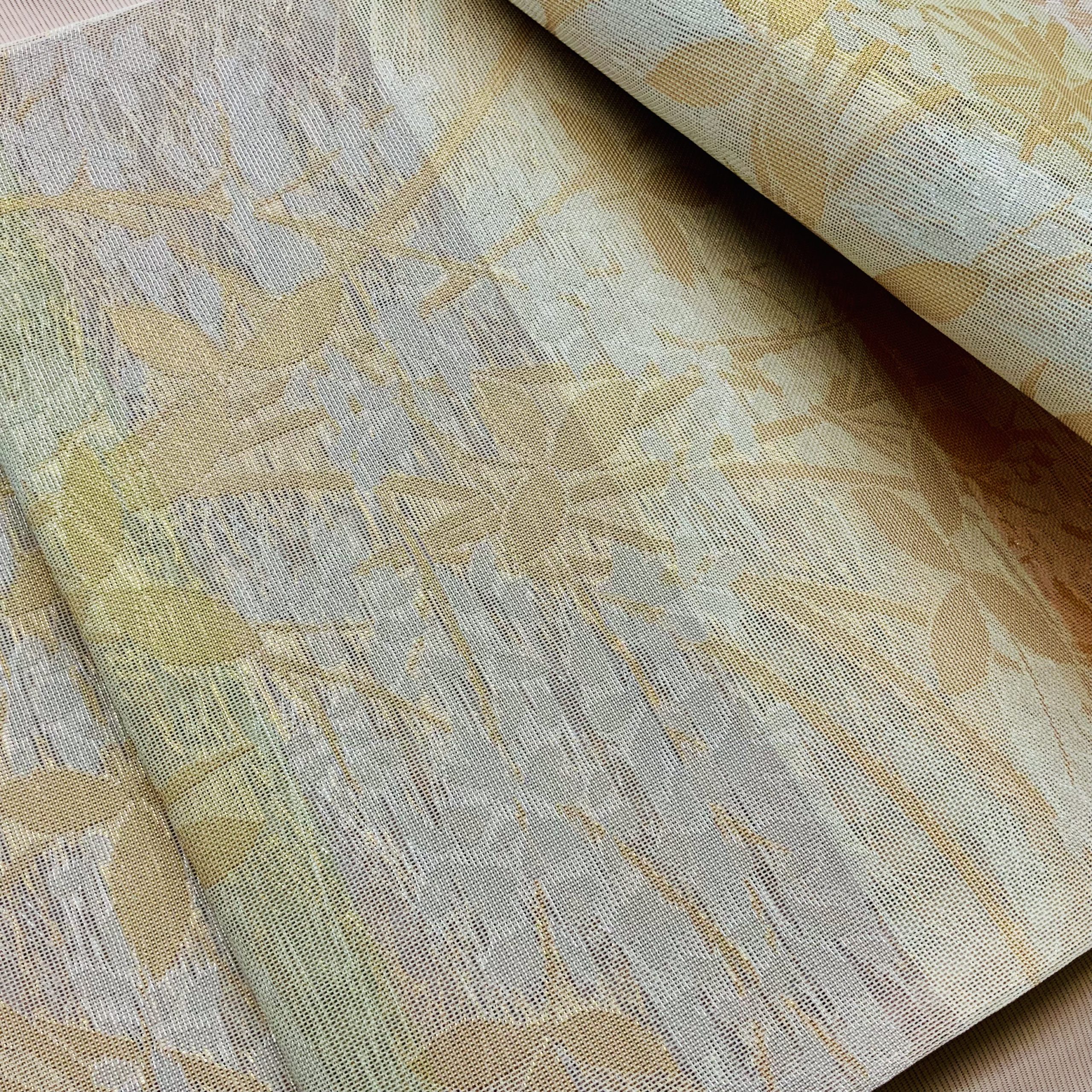 紗袋帯 西陣織 色段に宗達萩尾花