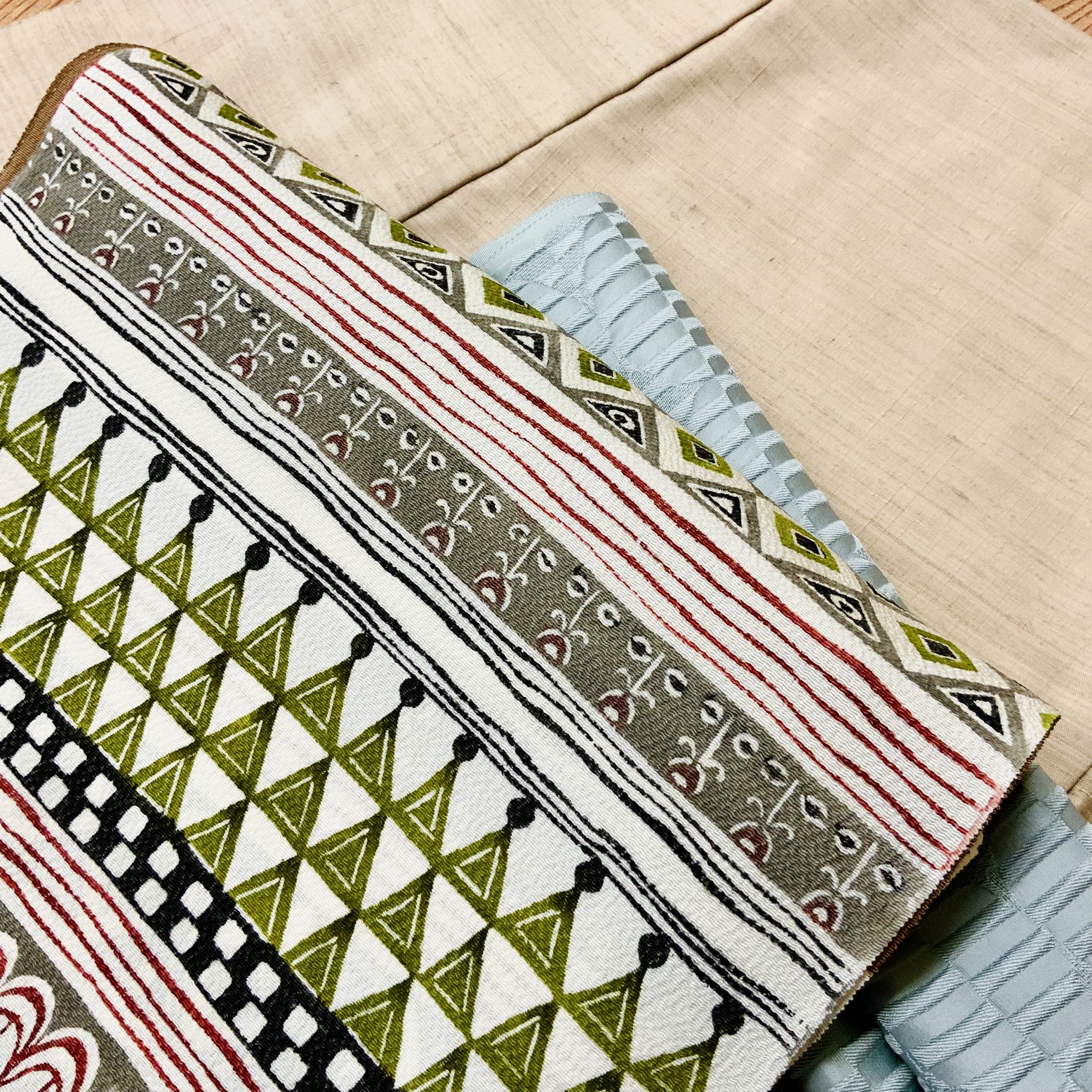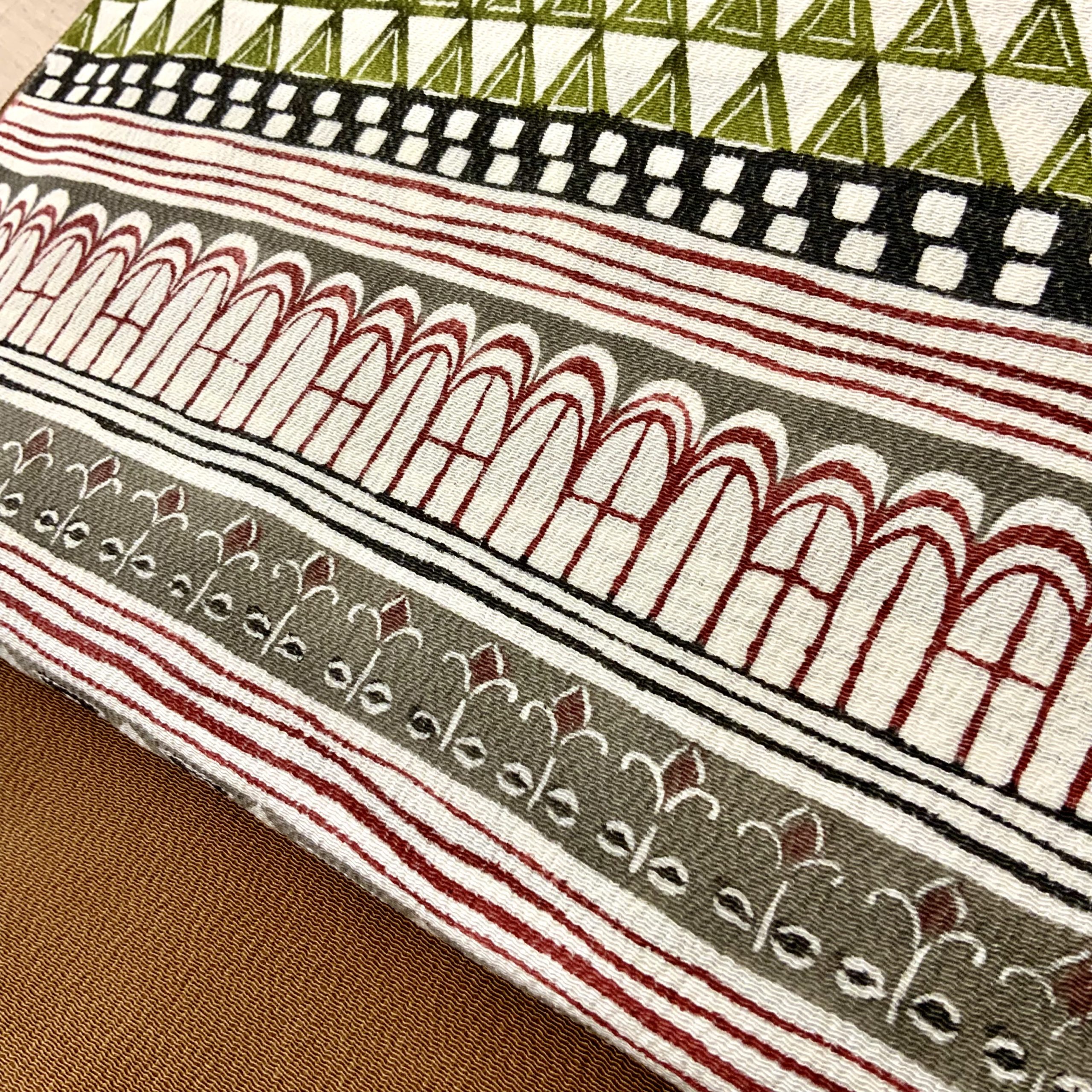 名古屋帯 ちりめん帯 更紗文様 段更紗